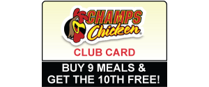 Champs Chicken 6:00am - 3:00pm (Closed Sunday)